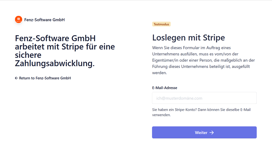 Wenn Sie das nicht schon vorab getan haben, legen Sie dann dazu jetzt einen Account an und folgen Sie bitte dem Wizzard von Stripe...