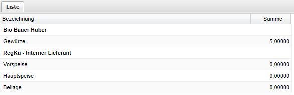 | Summe | Anzeige der Summe je Produktklasse. |