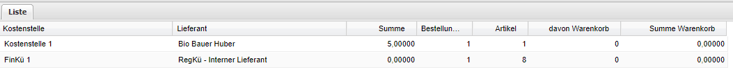 Liste Bestellübersicht