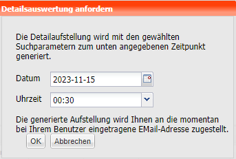 | Detailauswertung anfordern | Am rechts unteren Bildschirmrand kann man durch Betätigen des Buttons |