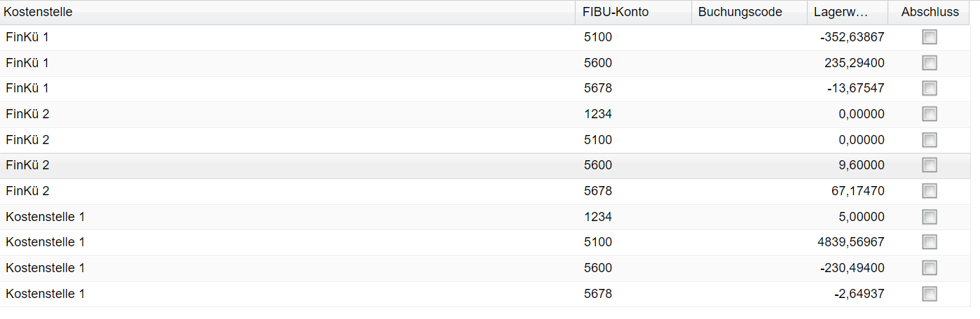 | Abschluss | Ist der Schalter gesetzt, wurde an diesem Tag ein Inventurabschluss durchgeführt. |