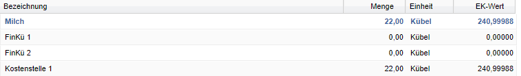 | EK-Wert | Anzeige des Einkaufs-Werts je Kostenstelle. |