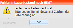 | Bezeichnung | Eingabe von mindestens drei Zeichen, um nach einem Lagerbestand suchen zu können. |
