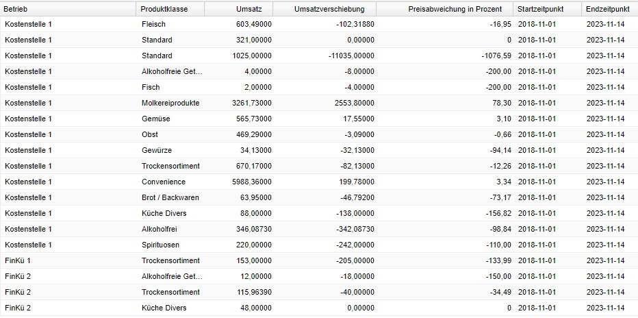 | Preisabweichung in Prozent | Anzeige der Preisabweichung in Relation zum Umsatz. |