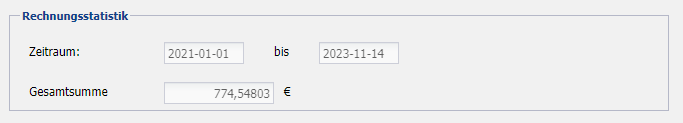 | Gesamtsumme | Anzeige der Gesamtsumme aller Rechnungen in diesem Zeitraum. |