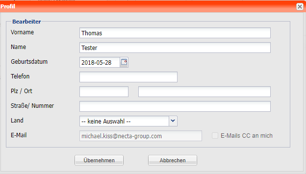 An dieser Stelle ist es für den Bearbeiter möglich, die im SYSADMIN hinterlegten Stammdaten zu bearbeiten.