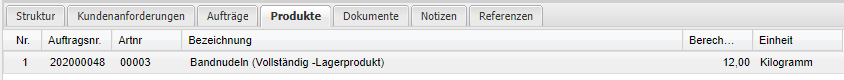 | Auftragsnr. | Anzeige der Auftragsnummer, falls Produkte aus Aufträgen hinzugefügt wurden. |