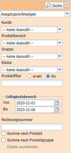 | Produktfilter | Eingabe einer Produktbezeichnung. |