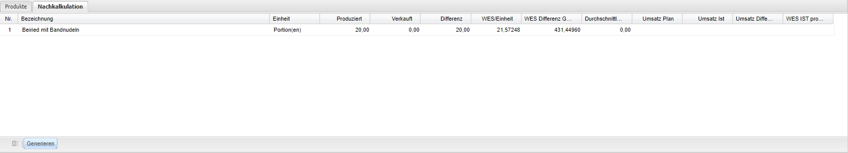 Anzeige des tatsächlichen Wareneinsatzes je Einheit. |
