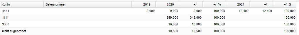 | 2019 (Zeitraum vor 2 Jahren) | Anzeige der Umsätze je Kontonummer. |