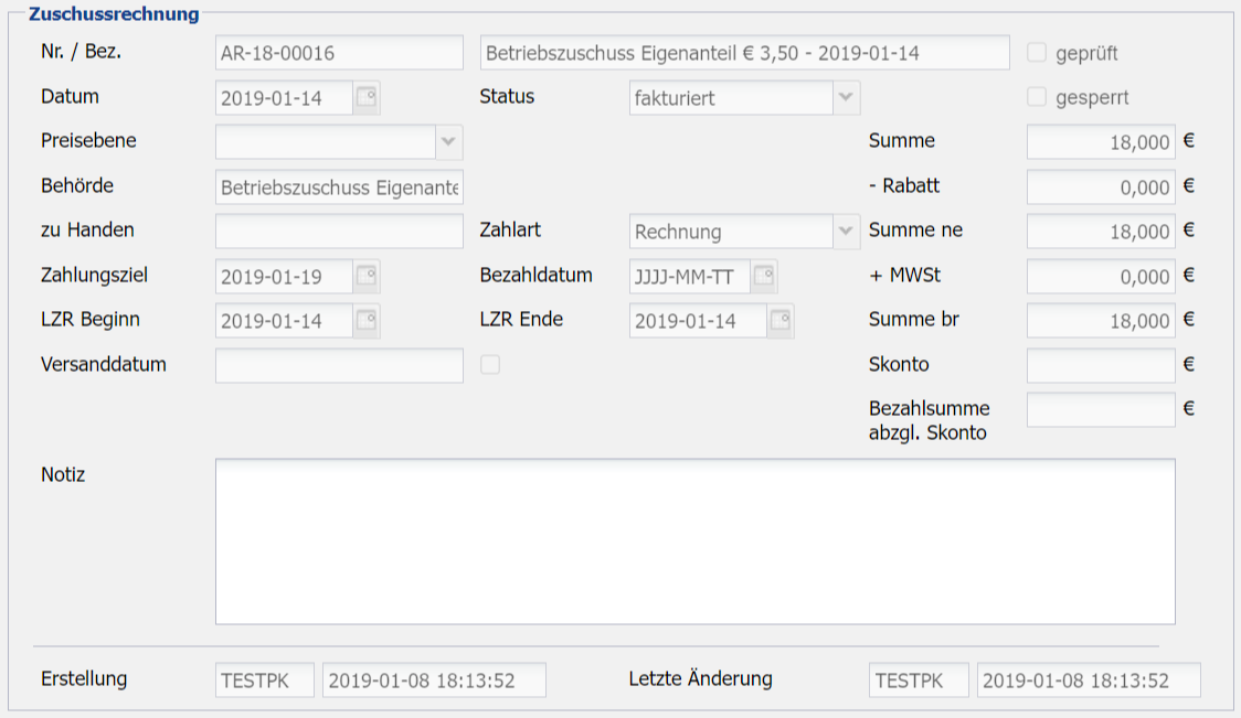 Zuschussrechnungen werden üblicherweise dafür genutzt Rechnungen für die bei den bezuschussten Kontakte hinterlegten Behörden zu erstellen.\ \ Das betrifft zumeist Kinder, die ein Recht auf die Bezuschussung für die Verpflegung haben.\ \ Aufträge für Behörden werden automatisch erstellt, wenn am Kundenkontakt die Bezuschussung hinterlegt wurde.