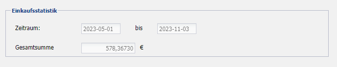 | Gesamtsumme | Anzeige der Gesamtsumme der Warenzugänge in diesem Zeitraum. |