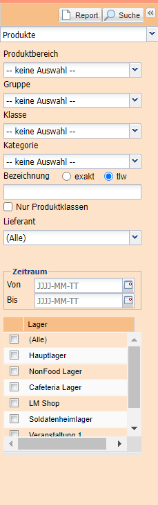 | Produktbereich | Auswahl eines Produktbereichs auf den eingeschränkt werden soll. |