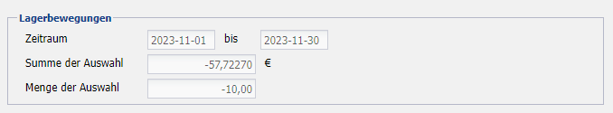 | Summe der Auswahl | Anzeige der Summe aller Lagerbewegungen in € |