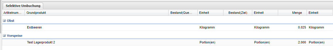 Die selektive Umbuchung wird im Regelfall dafür benutzt, um die Gesamtheit der Produkte einer Bestellung komfortabel auf ein anderes Lager umzubuchen. Bei diesen Bestellungen handelt es sich üblicherweise um Anforderungen einer anderen zu servicierenden Kostenstelle.