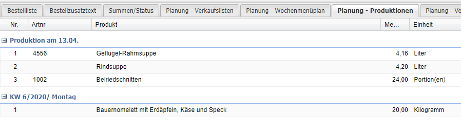 An dieser Stelle kann auf Basis von Produktionen eine Bedarfsliste für die Bestellung erstellt werden.
