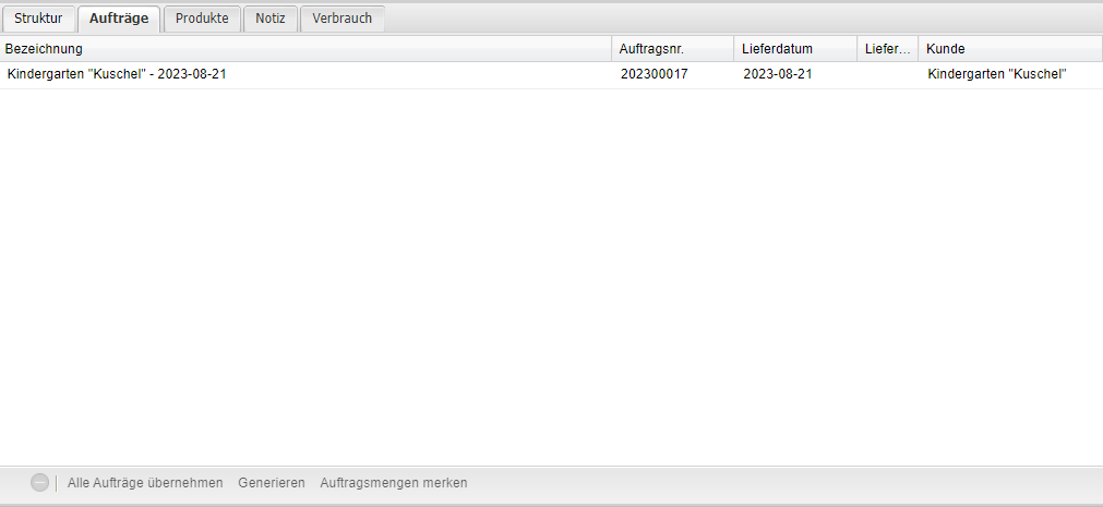 Durch Betätigen des Buttons werden sämtliche Aufträge und Produktionsmengen in die Struktur generiert. |