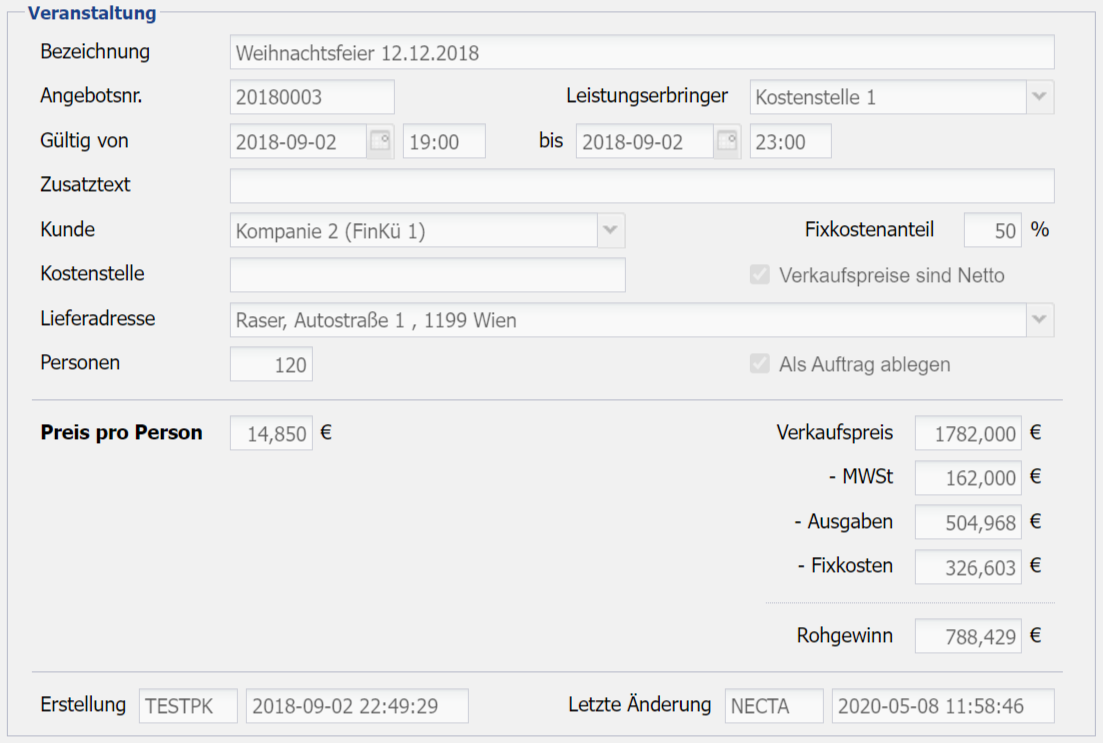 Preis pro Person Anzeige des berechneten Preises pro Person. Berechnungsformel = Verkaufspreis / Anzahl der Personen.