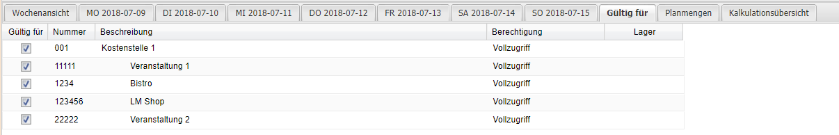 - Vollzugriff (die Kostenstelle darf den Wochenmenüplan verändern und löschen).