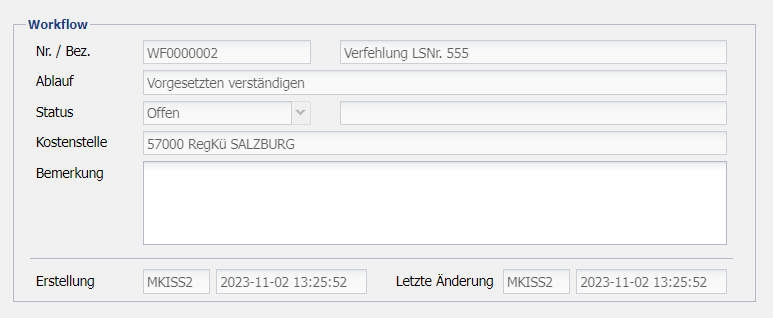 Bemerkung Hinterlegen einer Bemerkung bzw. Anzeige sämtlicher Bemerkungen, welche über die Aufgabenliste vom Bearbeiter hinzugefügt wurden.