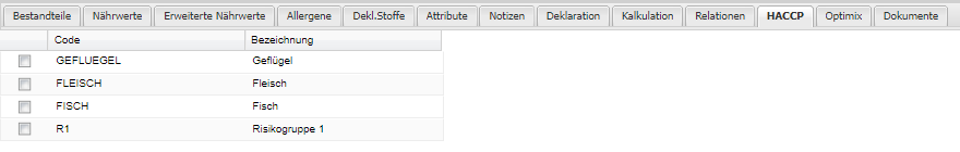 | Checkbox | Auswahl der "CCPs", welche dieses Grundprodukt "erfüllen" muss. |