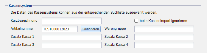 | beim Kassenimport ignorieren | Ist der Schalter gesetzt, wird der Artikel beim Kassenimport nicht übertragen. |