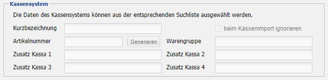 beim Kassenimport ignorieren Ist der Schalter gesetzt, wird der Artikel beim Kassenimport nicht übertragen.