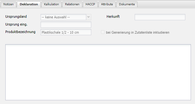 Hinterlegen einer Sachbezeichnung. Wird z.B. bei der automatischen Generierung der Zutatenliste benötigt. |