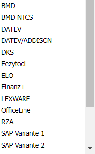 Auswahl der Buchhaltungsschnittstelle: