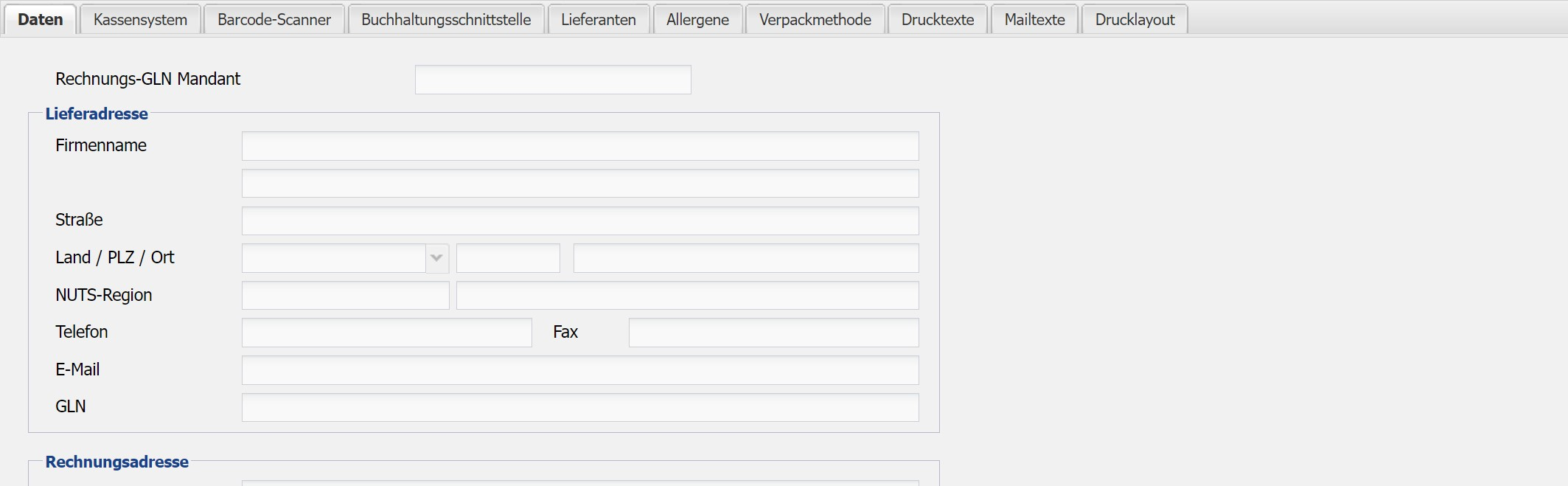 | GLN | Hinterlegen der (Liefer-) GLN. Rechnungs-GLN und Liefer-GLN können sich unterscheiden. |