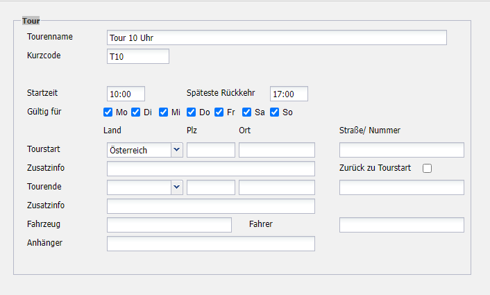 Auswahl der Wochentage an denen die Tour gefahren wird |