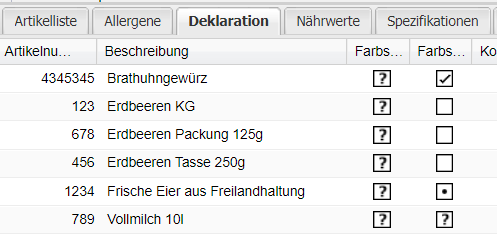 Je deklarationspflichtigen Stoff gibt es zwei Spalten. Die linke Spalte ist jene, welche mit den Daten des Lieferanten befüllt wird. Die rechte Spalte ist jene, welche der Bearbeiter selbständig bearbeiten kann. Standardmäßig befinden sich in der rechten Spalte, dieselben Informationen, wie jene aus der linken Spalte. Sollte ein Bearbeiter die Informationen selbst hinterlegen und in der rechten (eingegebenen) Spalte etwas bearbeiten, dann werden diese Änderungen in sämtliche Strukturen in necta bei einer LMIV-Datenübernahme nachgeführt.