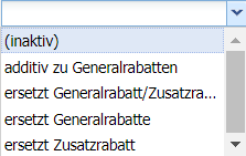 Rabatt An dieser Stelle können kostenstellenspezifische Rabatte hinterlegt werden. Hinterlegen eines prozentuialen Wertes.