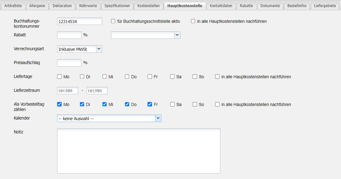 Liefertage Wenn kein Schalter gesetzt ist, dann kann für alle Liefertage bestellt werden. Ansonsten kann nur für jene Tage bestellt werden, die einen Schalter gesetzt haben.