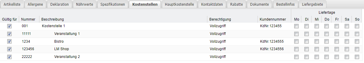 Liefertage Wenn kein Schalter gesetzt ist, dann kann für alle Liefertage bestellt werden. Ansonsten kann nur für jene Tage bestellt werden, die einen Schalter gesetzt haben.