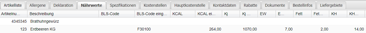 BLS-Code eingegeben Bundeslebensmittelschlüssel vom Bearbeiter eingegeben
