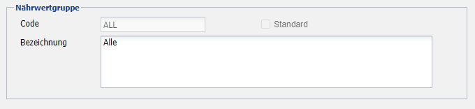 An dieser Stelle wird dann Code und Bezeichnung der gewählten Nährwertgruppe angezeigt (änderbar).