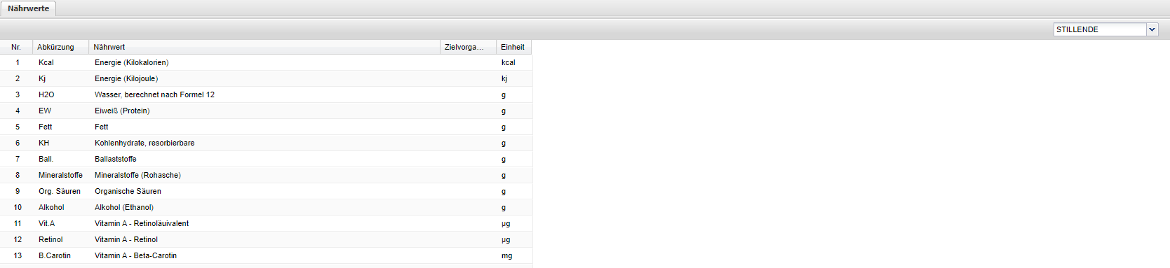 | Nährwert | Anzeige der Nährwerte |