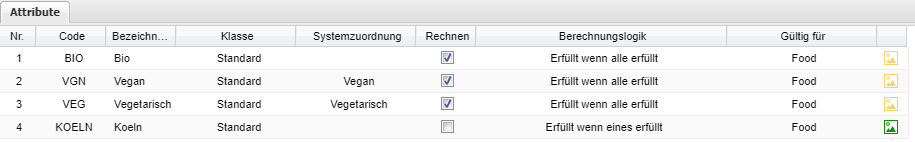 Bei der Auswahl "Gültig für Food" würde auch das Getränk das Attribut "Bio" automatisch hinterlegt bekommen.