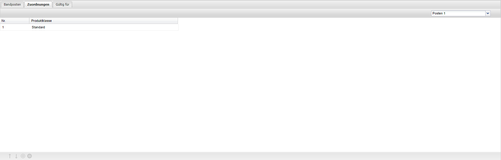 | Produktklasse | Zuordnen der Produktklassen zu den zuvor angelegten (Band-)Posten. z.B. Dessert auf Posten 1 |