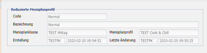 | Menüplanprofil | Auswahl des Menüplanprofils |