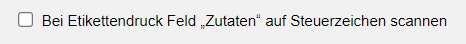 Bei Etikettendruck Feld „Zutaten“ auf Steuerzeichen scannen