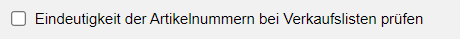 Eindeutigkeit der Artikelnummern bei Verkaufslisten prüfen