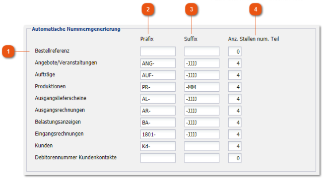 Hinterlegen der Anzahl der Stellen der automatisch generierten Nummer.