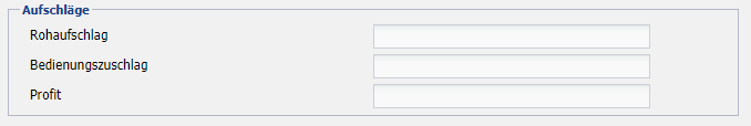 Hinterlegen einer frei wählbaren Bezeichnung für die drei Systemseitig vorgegebenen Kalkulationsaufschläge „Rohaufschlag“, „Bedienzuschlag“ und „Profit“ je Kostenstelle. Diese überschreibt die in die ggf. in den Grundeinstellungen des Mandanten hinterlegten mandantenspezifische Bezeichnungen, jedoch ausschließlich für diese Kostenstelle.