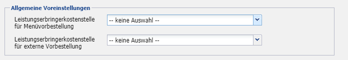 Wird über die Wochenmenüvorbestellung ein Auftrag angelegt, dann wird als Leistungserbringer die hier ausgewählte Kostenstelle verwendet.
