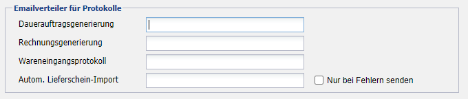 Hinterlegen einer oder mehrerer E-Mailadressen (Trennung durch Semikolon ;), an welche eine Bestätigung bei der Generierung eines Wareneingangsprotokolls gesendet werden soll.