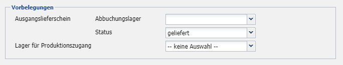 Wird ein Ausgangslieferschein neu angelegt, dann werden diese Werte als Standardwerte hinterlegt. D.h. stellt man ein Abbuchungslager ein, dann wird dieses Feld des Ausgangslieferschein mit diesem Lager vorbefüllt.