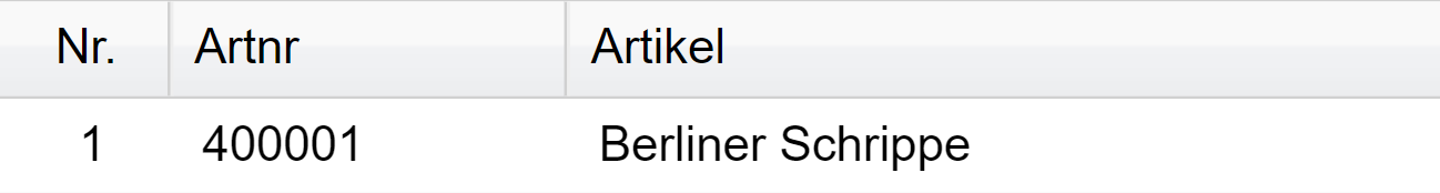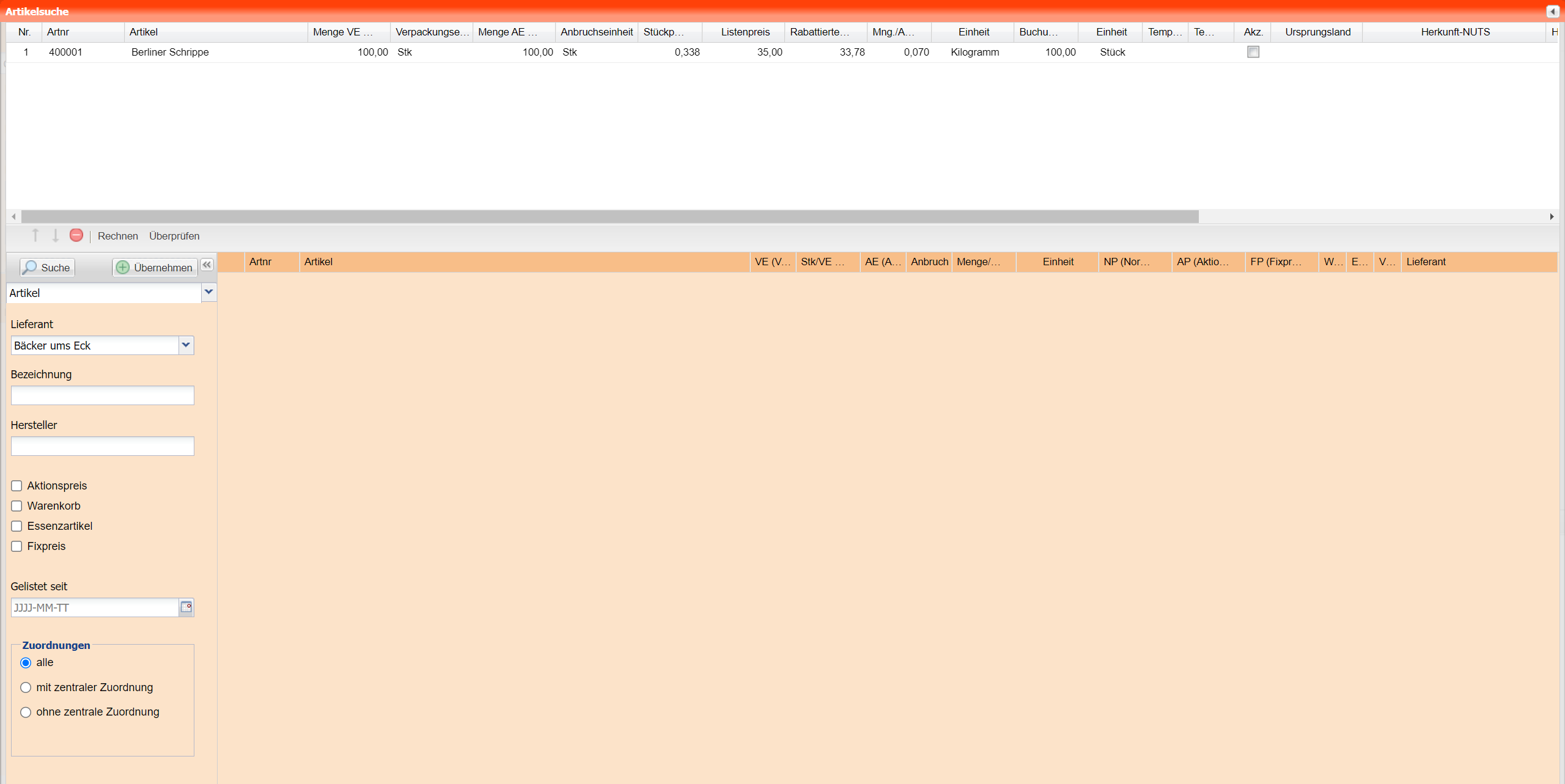 Unter "Bezeichnung" kann man nach den Einkaufsartikeln suchen. Entweder per Artikelnummer oder nach der Artikelbezeichnung. In diesem Fall wurde die Artikelnummer gewählt.