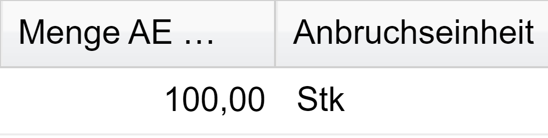 Die Menge in der Spalte "Menge AE" wird mit der Menge in der Spalte "Mng./AE" multipliziert.